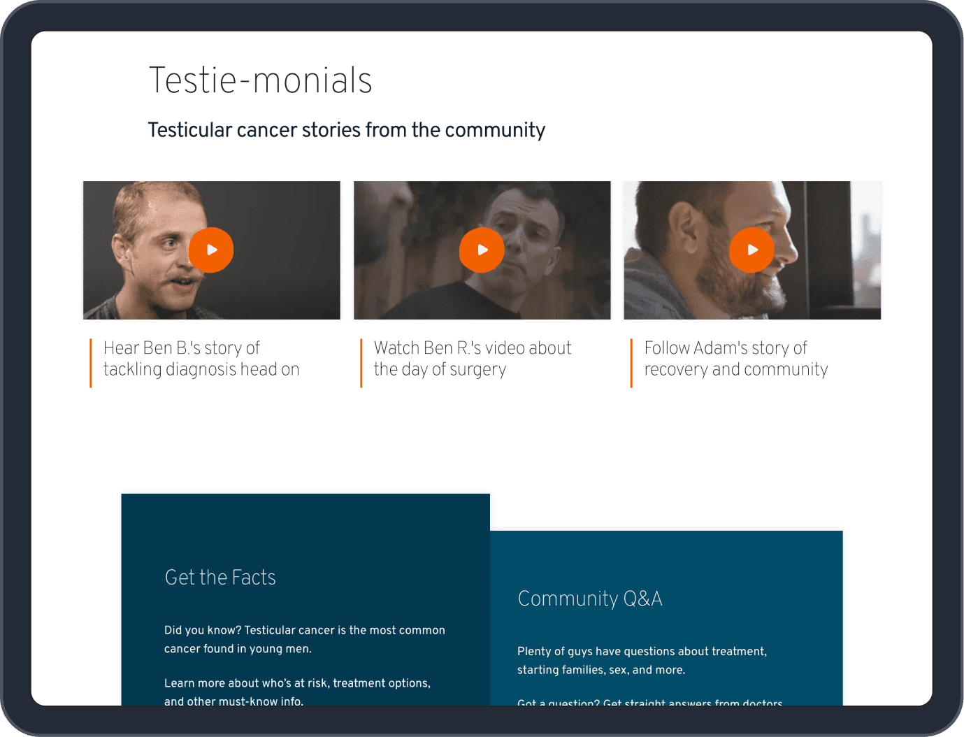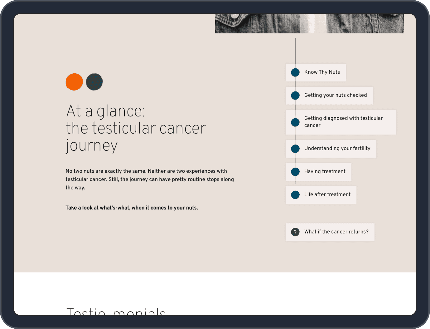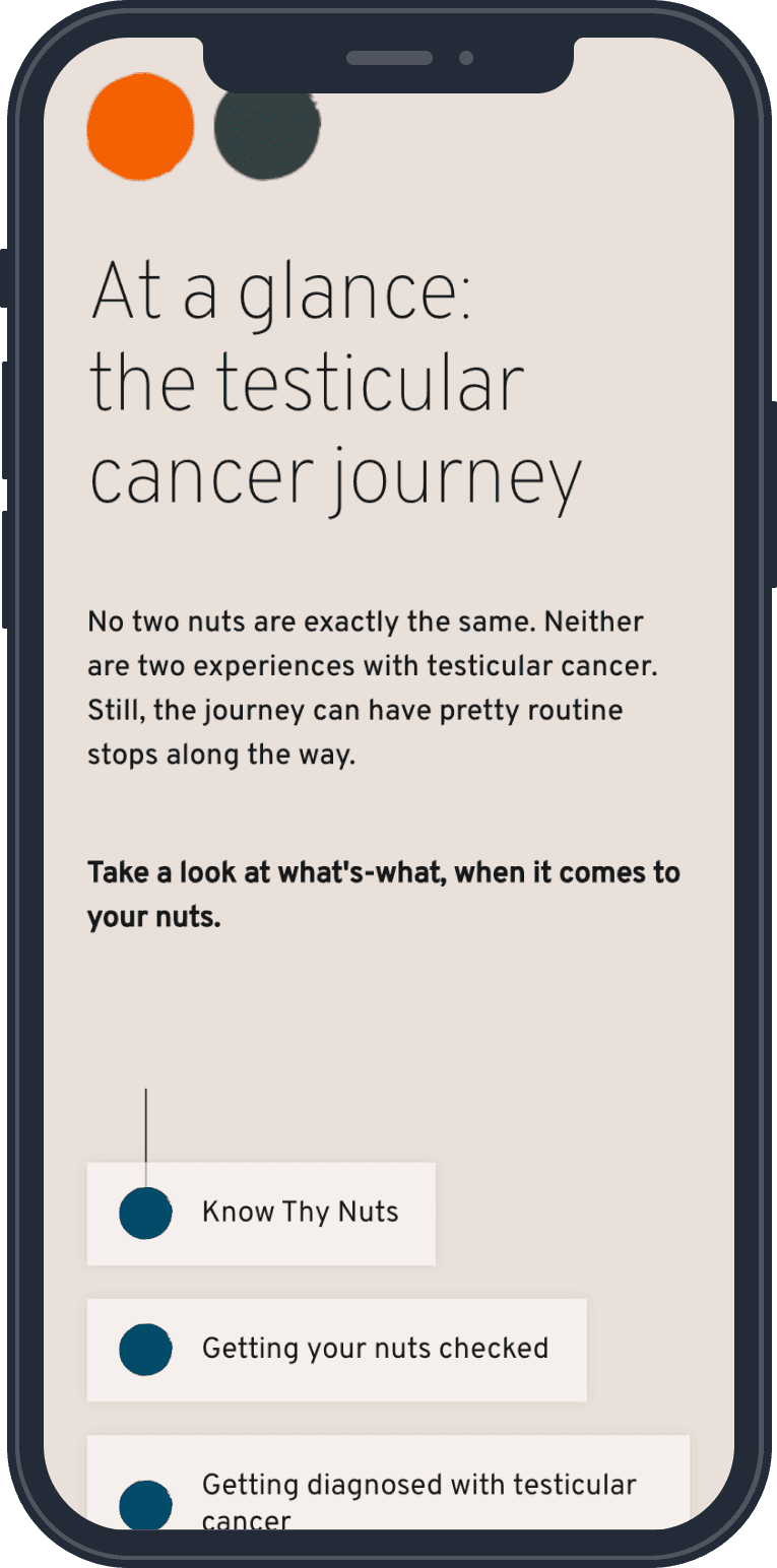 True North Testicular Cancer enables men to get the information and support they need to understand their testicular cancer journey and take steps to improve their wellbeing post-treatment and beyond. The product has been built in collaboration with men and their supporters.