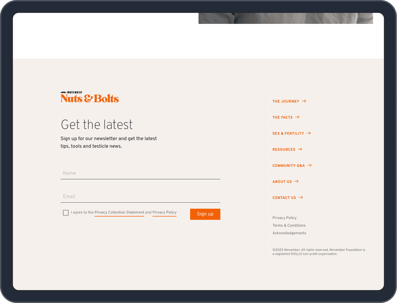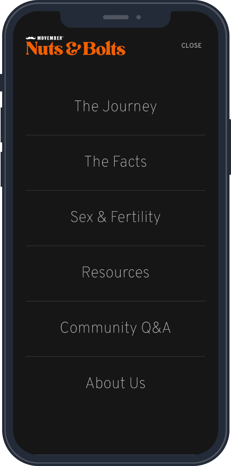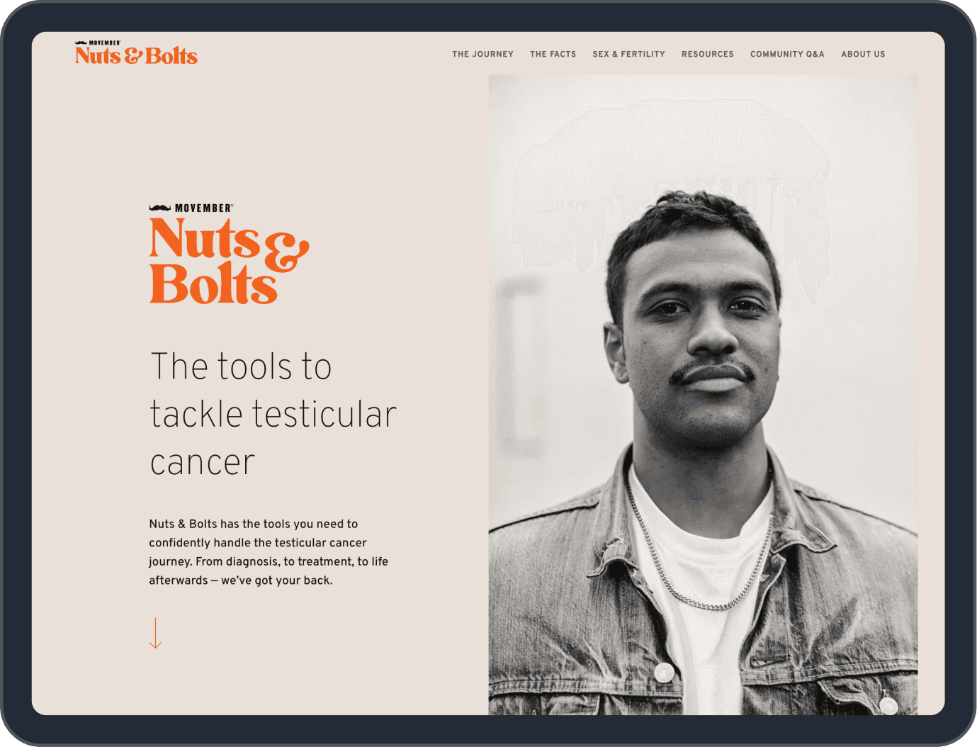 In collaboration with Orbit29 we worked on outlining the UI for Movember's Nuts&Bolts project